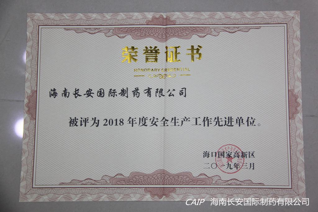 3月21日上午,在海口國家高新區(qū)2019年第一次安全生產(chǎn)工作會(huì)議暨2018年度安全生產(chǎn)工作表彰大會(huì)上,海南長安國際制藥有限公司榮獲“2018年度安全生產(chǎn)工作先進(jìn)單位”的表彰。
