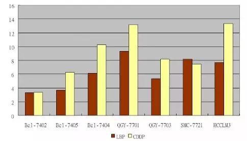 3.不同的國人肝癌細胞系對洛鉑的敏感性呈現(xiàn)明顯異質(zhì)性。