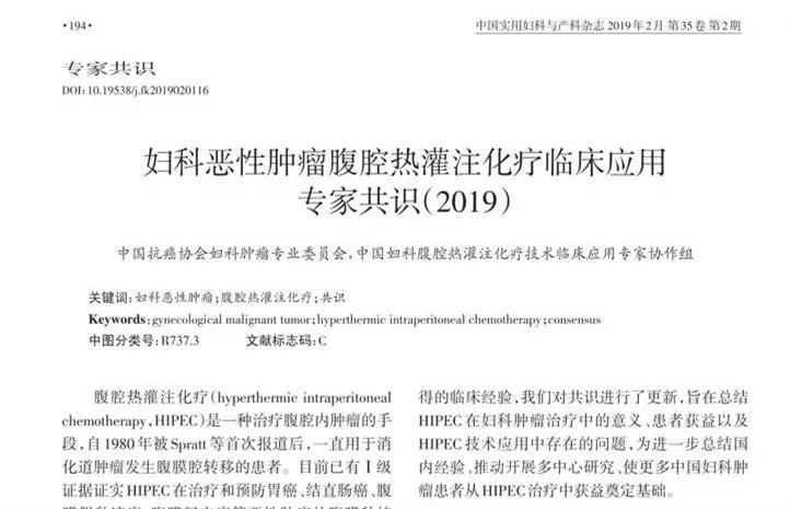 2017年,中國婦科腫瘤專家遵循循證醫(yī)學原則,對應用HIPEC治療婦科腫瘤的證據進行了總結,并以此為依據制定了我國首部《婦科腫瘤腹腔熱灌注治療臨床應用專家共識》。2017年后,HIPEC技術的合理運用和臨床經驗又獲得了更進一步的進展。