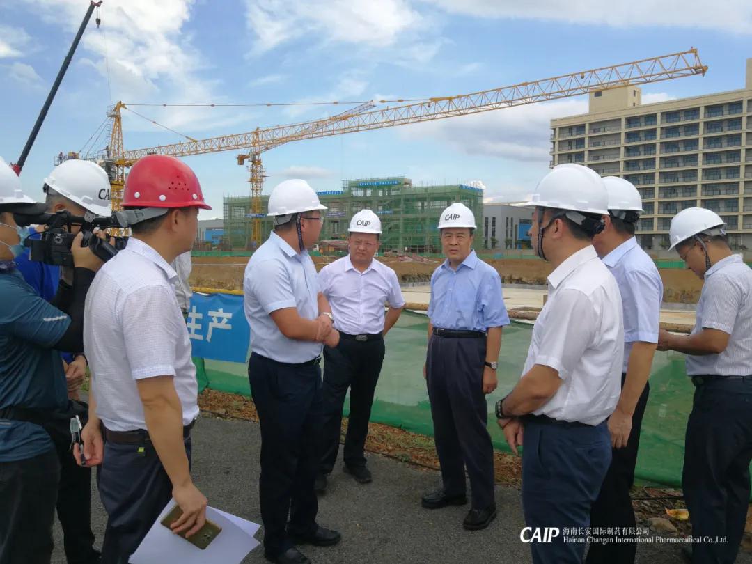 7月22日下午,海南省委常委、常務(wù)副省長(zhǎng)毛超峰率調(diào)研組到長(zhǎng)安制藥美安科技新城新廠建設(shè)項(xiàng)目調(diào)研項(xiàng)目建設(shè)推進(jìn)情況。??谑形N?、副市長(zhǎng)鞠磊,省發(fā)改委、工信廳、住建廳等相關(guān)單位領(lǐng)導(dǎo)及高新區(qū)管委會(huì)主任劉立武等一同參加調(diào)研活動(dòng),海南長(zhǎng)安制藥總經(jīng)理汪立冬陪同調(diào)研組并詳細(xì)介紹美安新廠項(xiàng)目建設(shè)情況。