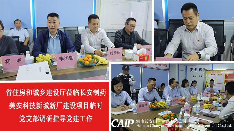 12月2號,海南省住房和城鄉建設廳行業黨委專職副書記李述朝、辦公室副主任楊洲、海南省建設工程質量安全監督管理局副局長劉長征、海南建設信息協會總工程師潘吉祥等一行,蒞臨中共長安制藥美安科技新城新廠建設項目臨時黨支部,座談交流黨建工作經驗做法,促進黨建工作提升。座談會上質安局劉長征指出,在海南自貿島建設之際,把黨建工作建在項目上,充分體現了民營企業對黨建工作的重視程度,在長安制藥美安科技新城新廠的建設過程中,黨建工作要以業務和建設工作深度融合,才有生命力。