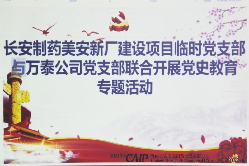 為了扎實(shí)開(kāi)展黨史學(xué)習(xí)教育活動(dòng),感悟共產(chǎn)黨人奮斗歷程中直面艱難險(xiǎn)阻的不屈精神,進(jìn)一步加強(qiáng)黨員干部的黨性修養(yǎng)和理想信念,5月7日,長(zhǎng)安制藥美安科技新城新廠建設(shè)項(xiàng)目臨時(shí)黨支部與萬(wàn)泰公司黨支部在長(zhǎng)安制藥美安科技新城新廠建設(shè)項(xiàng)目會(huì)議室聯(lián)合開(kāi)展了黨史教育專(zhuān)題活動(dòng),教育引導(dǎo)黨員干部學(xué)黨史、悟思想、辦實(shí)事、開(kāi)新局。