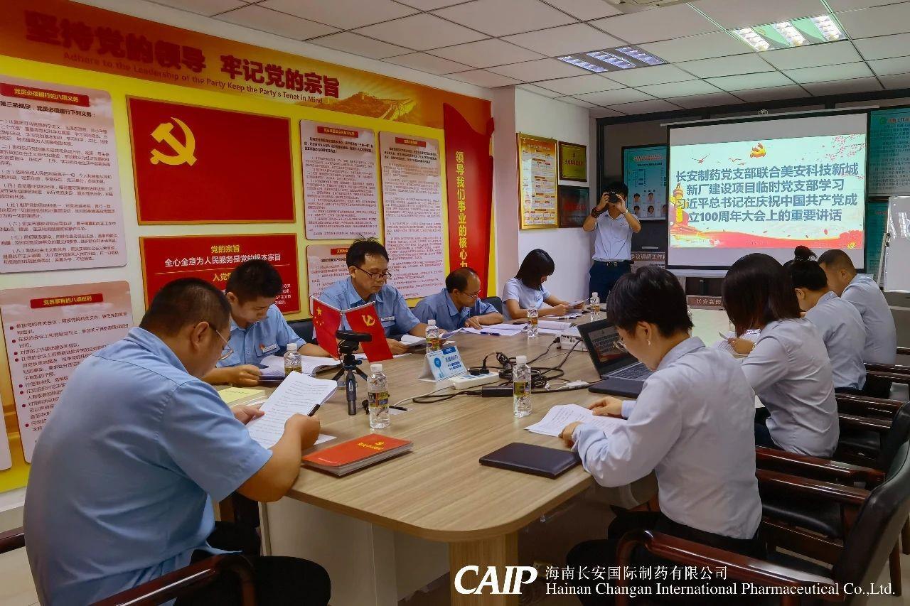 2021年7月26日,根據海口市委宣傳部《關于轉發<關于組織召開黨史學習教育專題組織生活會的通知>的通知》(海學組辦發〔2021〕17號)文件指示精神,按照中共海口國家高新區工委的部署要求,長安制藥黨支部聯合美安科技新城新廠建設項目臨時黨支部召開黨史學習教育組織生活會,全體黨員和入黨積極分子參加。