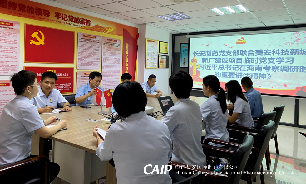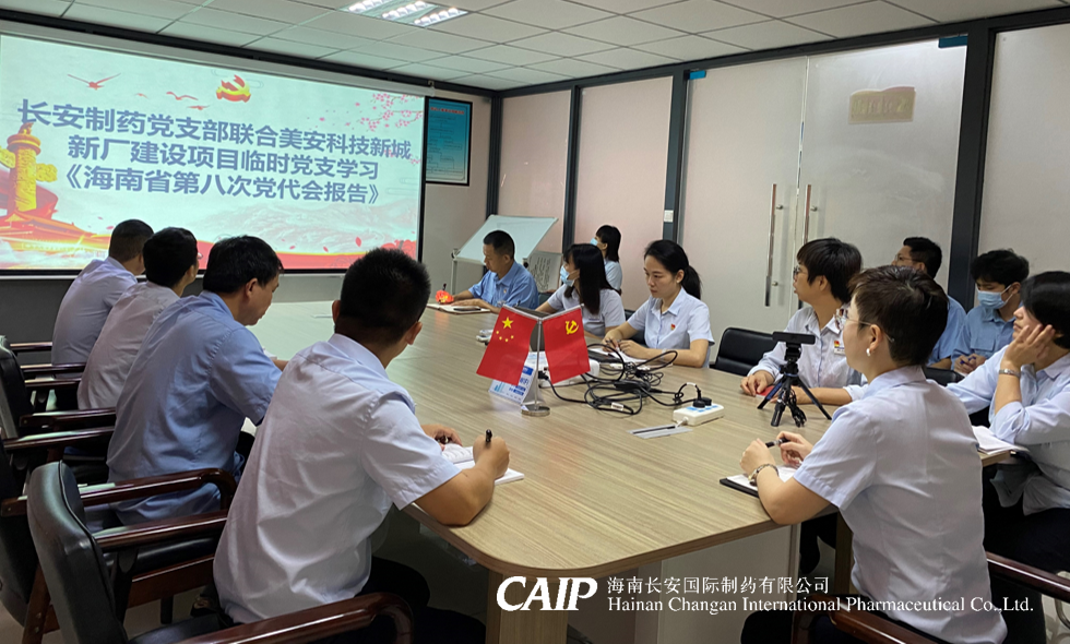 2022年5月26日上午,海南長安國際制藥有限公司黨支部聯(lián)合海南長安制藥美安科技新城新廠建設項目臨時黨支部召開專題學習會,學習《習近平總書記在海南考察調(diào)研時的重要講話精神》以及《海南省第八次黨代會報告》。