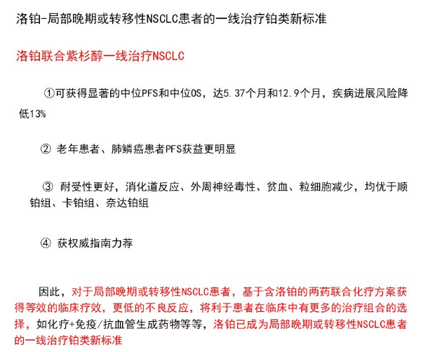 洛鉑作為一線化療方案藥物連續(xù)4年被"CSCO原發(fā)性肺癌診療指南"推薦!